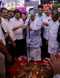 ಸಚಿವ ಡಾ.ಎಂ.ಸಿ.ಸುಧಾಕರ್, ಕೆ.ಎಚ್.ಮುನಿಯಪ್ಪ, ಎಚ್.ಸಿ.ಮಹದೇವಪ್ಪ, ಬೈರತಿ ಸುರೇಶ್, ಕೃಷ್ಣಬೈರೇಗೌಡ ಇನ್ನಿತರೆ ಸಚಿವರು, ಶಾಸಕರು, ಅತಿಥಿಗಳಿಗೆ ರೇಷ್ಮೆಹಾರ, ರೇಷ್ಮೆಶಾಲು ಹಾಗೂ ಗಣಪತಿ, ಬುದ್ದನ ಕಂಚಿನ ಮೂರ್ತಿಯನ್ನು ನೀಡಿ ಸನ್ಮಾನಿಸಿದರು.