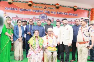 ಜಿಲ್ಲಾಡಳಿತ, ಜಿಲ್ಲಾ ಪಂಚಾಯತ್ ವತಿಯಿಂದ ದೇವನಹಳ್ಳಿ ಟೌನ್ ಕ್ರೀಡಾಂಗಣದಲ್ಲಿ ಆಯೋಜಿಸಿದ್ದ ಜಿಲ್ಲಾ ಮಟ್ಟದ “77ನೇ ಗಣರಾಜ್ಯೋತ್ಸವ”ದಲ್ಲಿ ಜಿಲ್ಲಾ ಉಸ್ತುವಾರಿ ಸಚಿವ ಕೆ.ಹೆಚ್ ಮುನಿಯಪ್ಪ ಅವರು ರಾಷ್ಟ್ರ ಧ್ವಜಾರೋಹಣ ನೆರವೇರಿಸಿ ತ್ರಿವರ್ಣ ಧ್ವಜಕ್ಕೆ ಗೌರವ ನಮನ ಸಲ್ಲಿಸಿದರು.