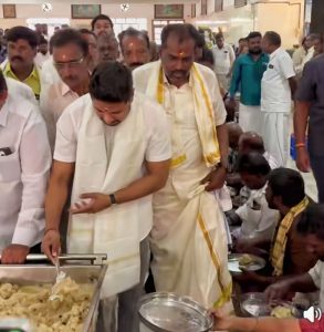 ಶ್ರೀಕಂಠೇಶ್ವರ ಸ್ವಾಮಿ ದೇವಾಲಯದ ದಾಸೋಹ ಭವನದಲ್ಲಿ ಶಾಸಕ ದರ್ಶನ್ ದ್ರುವ ನಾರಾಯಣ ಅವರು ಭಕ್ತರಿಗೆ ಬೆಳಗಿನ ತಿಂಡಿ ವಿತರಿಸುವ ಕಾರ್ಯಕ್ಕೆ ಚಾಲನೆ ನೀಡಿದರು.