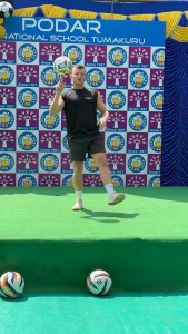 ಪೋದಾರ್ ಅಂತರರಾಷ್ಟ್ರೀಯ ತುಮಕೂರು ಶಾಲೆಗೆ ಫ್ರೀ ಸ್ಟೈಲ್ ಫುಟ್ಬಾಲ್ ಆಟಗಾರ ಜೇಮೀ ನೈಟ್ ಭೇಟಿ; ರೋಮಾಂಚನಗೊಂಡ ವಿದ್ಯಾ ರ್ಥಿಗಳು