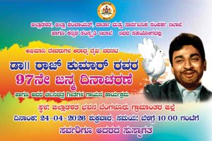 ಏ.24 ರಂದು ಬೆಳಗ್ಗೆ 11 ಗಂಟೆಗೆ ಕಾರ್ಯಕ್ರಮ ಆಯೋಜನೆ ಮಾಡಲಾಗಿದ್ದು, “ಡಾ. ರಾಜ್ ಕುಮಾರ್ ಅವರ ಭಾವಚಿತ್ರಕ್ಕೆ ಜಿಲ್ಲಾಧಿಕಾರಿ ಡಾ. ಕೆ.ಎನ್ ಅನುರಾಧ ಅವರು ಪುಷ್ಪಾ ನಮನ ಸಲ್ಲಿಸಲಿದ್ದಾರೆ. ಕಾರ್ಯಕ್ರಮದಲ್ಲಿ ವಿಶೇಷವಾಗಿ ಡಾ. ರಾಜ್ ಕುಮಾರ್ ಅವರ ಗೀತೆಗಳ ಗಾಯನ ವನ್ನು ಏರ್ಪಡಿಸಲಾಗಿದೆ.